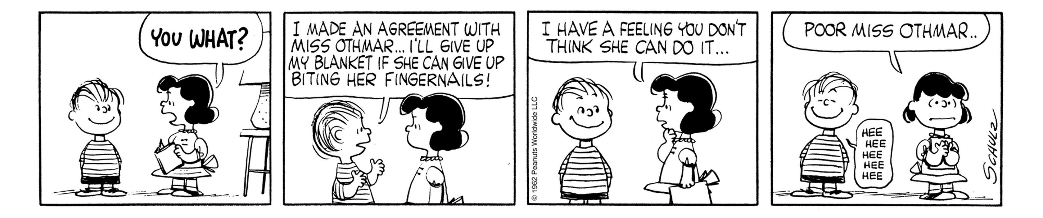 Linus refers to her as, “A gem among gems.” And he considers her the best teacher in the world. He quickly develops a schoolboy crush on Miss Othmar, but despite his devotion, he can never remember to bring eggshells from home for his big class project, to her eternal frustration. Miss Othmar briefly retires when she marries Mr. Hagemeyer, but she misses teaching and soon returns to the classroom. Linus can’t bring himself to address her by her married name, so continues to call her Miss Othmar.