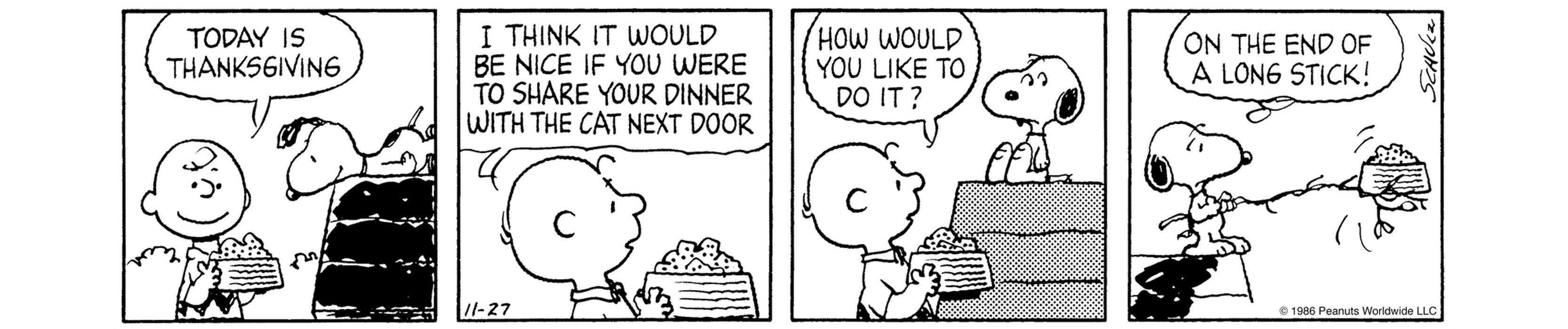 Snoopy is not a fan of cats. He has a particularly contentious relationship with World War II, aka “The Cat Next Door.” This vicious feline is known for his short temper, razor-sharp claws, and lack of appreciation for Snoopy and Woodstock’s cat jokes. With one mighty swipe, “The Cat Next Door” can reduce Snoopy’s doghouse to splinters. Except during the holidays, when he slashes the house into the shape of a festive Christmas Tree.